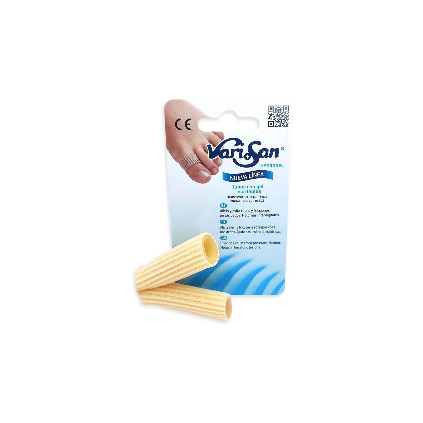 Descripción Tubo elástico con gel recortable indicado para aliviar y evitar roces y fricciones en los dedos. Helomas interdigitales. Dedos en martillo o en garra. Protección dorsal en dedos. Los estudios demuestran que HYDROGEL es un producto sin olor e hipoalergénico. No tiene crecimiento bacteriano ni es tóxico. Composición de Varisan Tubo Elástico con Gel Recortable Talla Grande, 1 Ud Tejido elástico y Gel Polímero. Modo de empleo Recortar un trozo de tubo de tamaño adecuado. A...