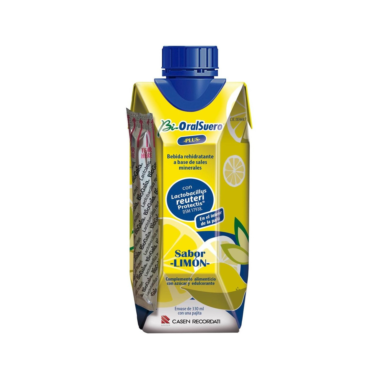 AGUA DESIONIZADA, GLUCOSA, ACIDULANTE (E-514(i)), CLORURO POTÁSICO, CITRATO SÓDICO, ESTABILIZADOR (E-414), ACEITE VEGETAL, EDULCORANTE (E-955), LACTOBACILLUS REUTERI PROTECTIS DSM 17938.CADA PAJITA CONTIENE 100 MILLONES DE UFC DE LACTOBACILLUS REUTERI PROTECTIS